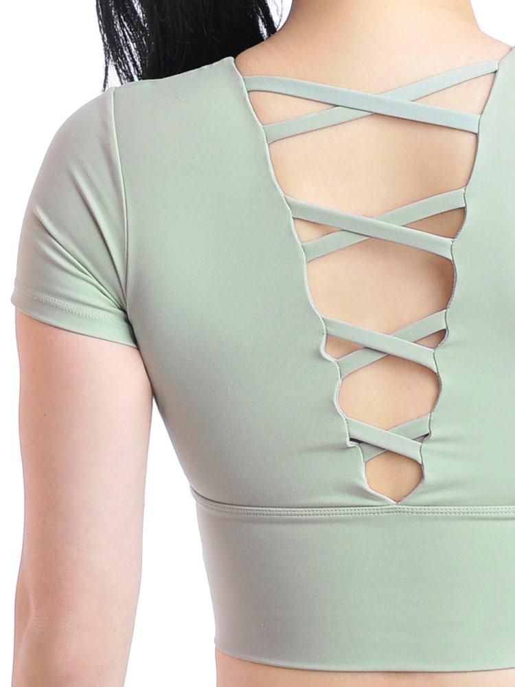 短めの着丈でお腹をちらりと見せたヘルシーな着こなしに。 クロスデザインの背中見せが女性らしい。 取り外し可能なブラカップ付きで1枚での着用にもオススメです。